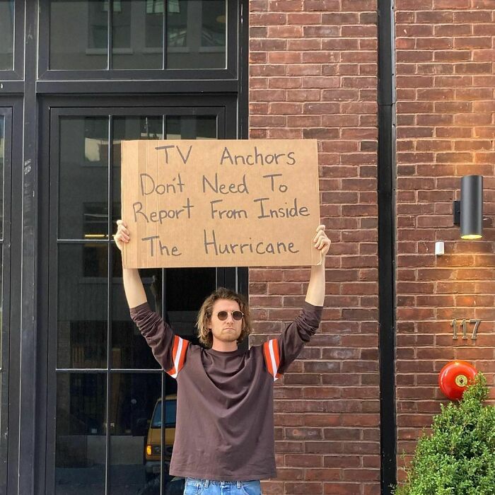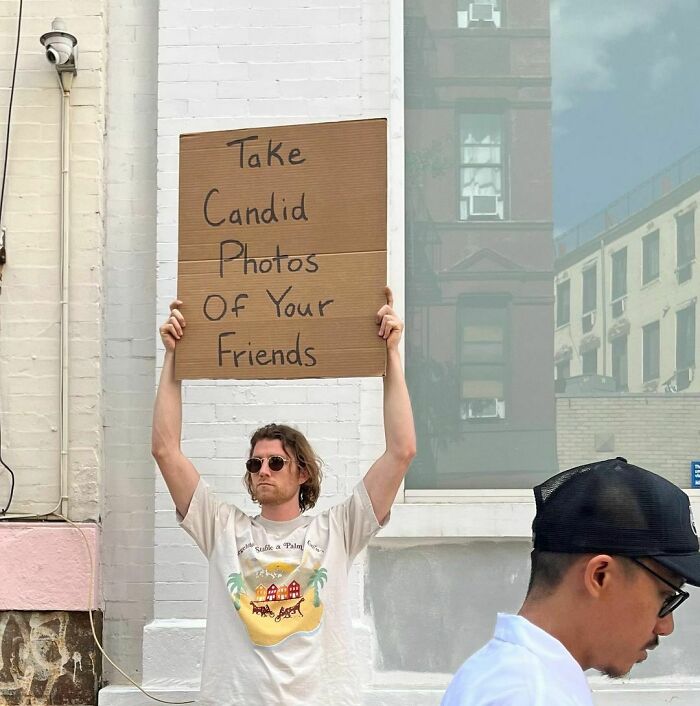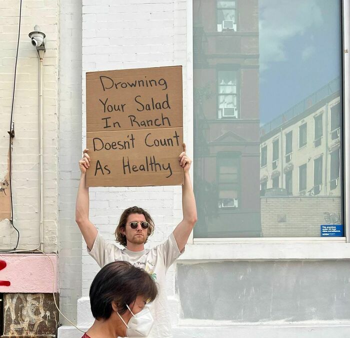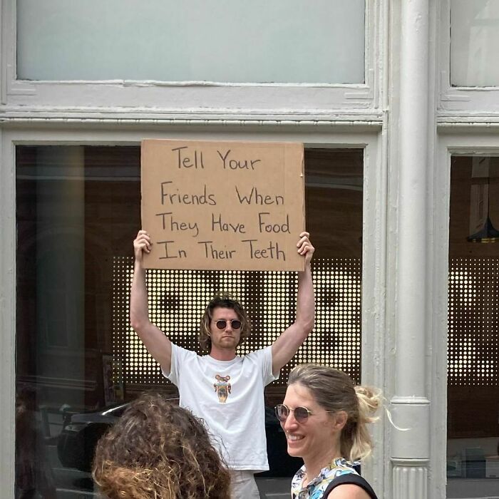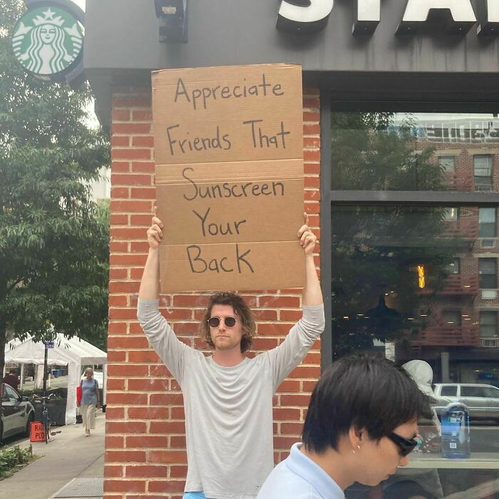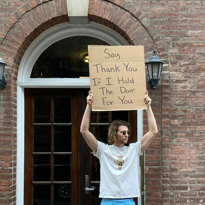 We’ve been following the journey of Dude With Sign here at Bored Panda for almost 3 years now, and his account has absolutely blown up since then (even more than it already had!). In 2020, Forbes published a piece featuring Seth, noting that the first Dude With Sign pic was taken in October 2019. Seth’s first sign stated, “Stop replying-all to company-wide emails”. The pic was originally only intended for Jerry Media founder Elliot Tebele’s Instagram account, but it was followed up by another pic of Seth holding a sign stating, “Seinfeld is way better than Friends”, which gained lots of traction online.