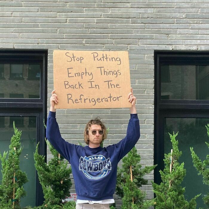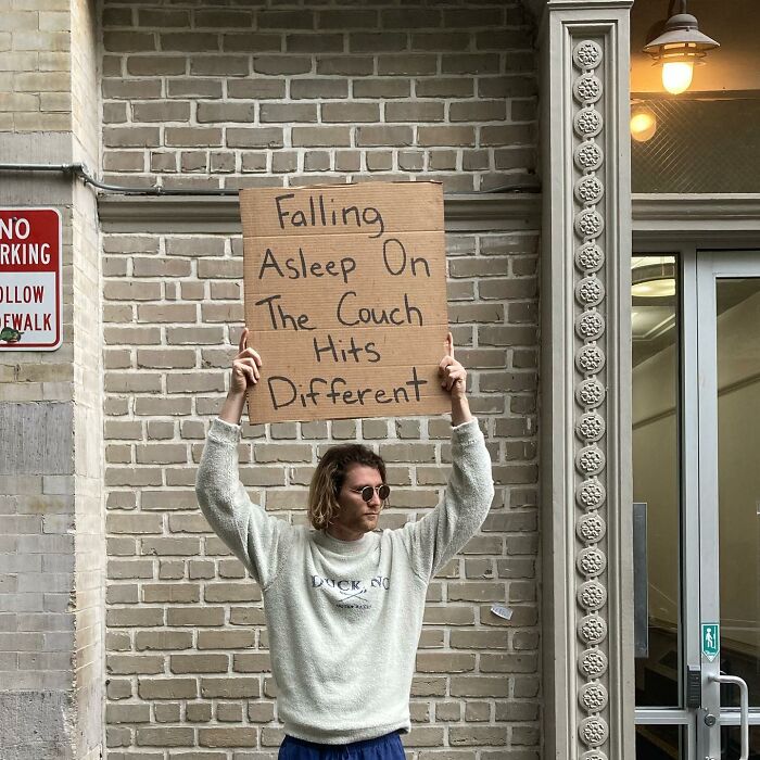 Enjoy this list featuring Seth calling out many things that might drive you crazy too, and be sure to upvote all of the signs featuring topics that you think are worth standing on a street corner to fight. Let us know in the comments what your cardboard sign would say if you followed in Dude With Sign’s footsteps, and then if you’re interested in checking out our previous articles highlighting this same Instagram account, you can find some of them here, here and here.