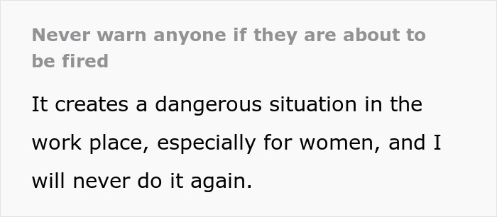 While warning a colleague about their impending termination might seem like kindness, things can quickly get out of hand