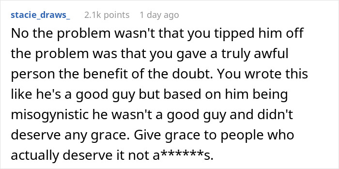 An internet user cautioned others against telling someone that they might get fired, as some people might take matters into their own hands