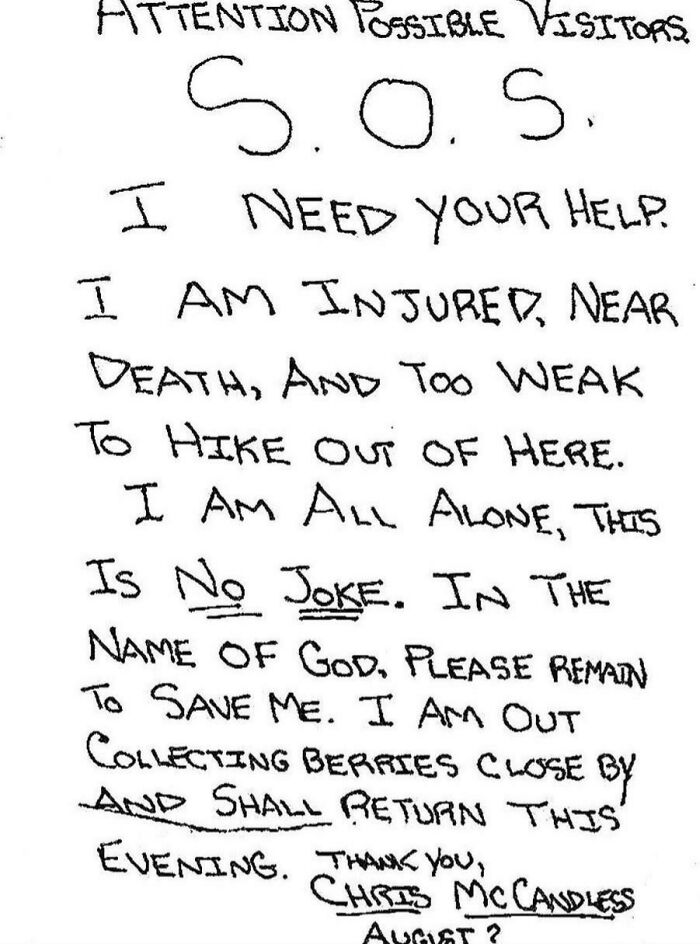 #20 Chris Mccandless Note That Was Found In His Truck In The Middle Of Alaska