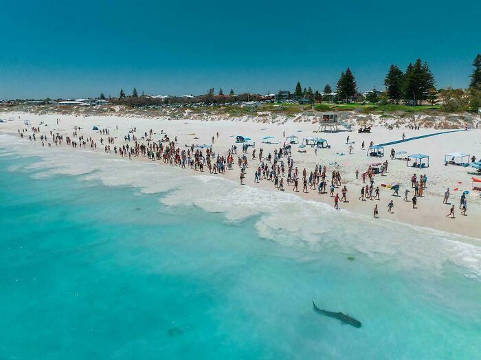 #13 Beachgoers Waiting For Trevor (Friendly Local Tiger Shark) To Finish His Turn At Mullaloo Beach In Western Australia Before They Go Back In