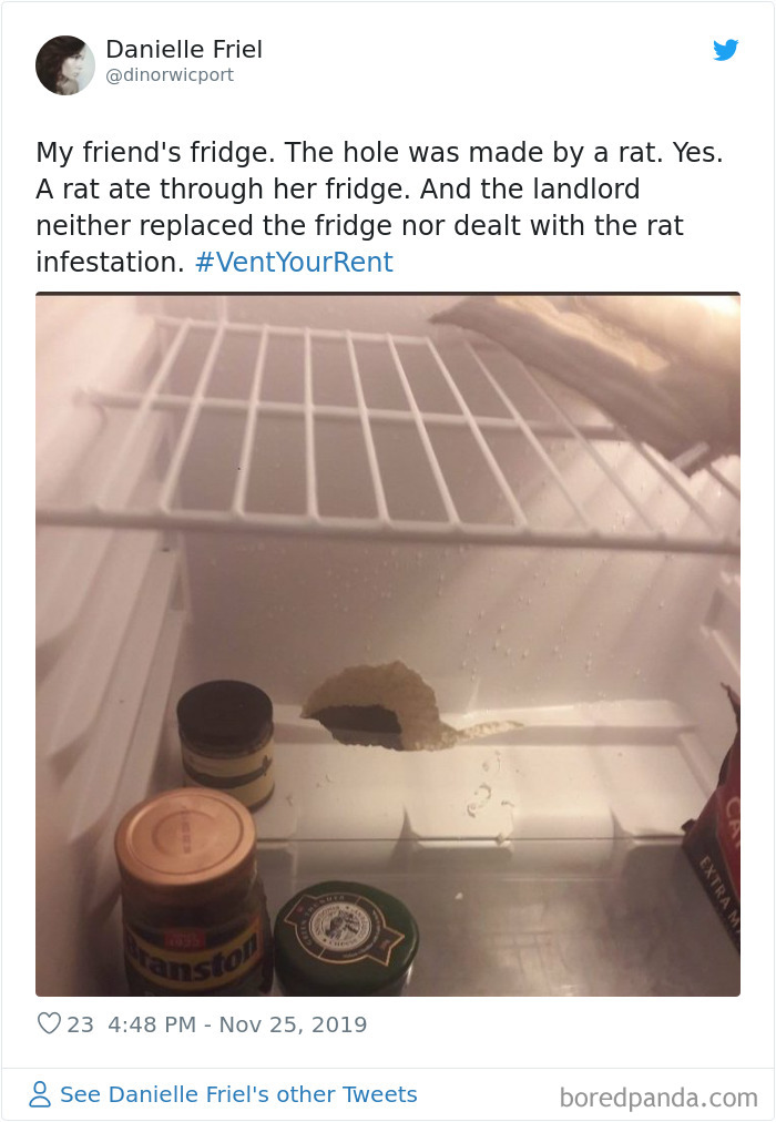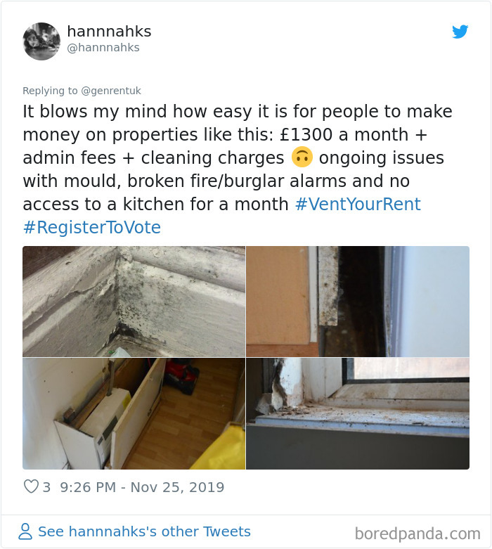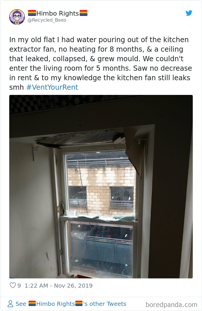 Like we at Bored Panda have already shown, some landlords seriously neglect their tenants. A few even deliberately take advantage or abuse them. To counter their ill-treatment, people are uniting under the hashtag #VentYourRent. They are using it to call for better protection, highlighting the housing crisis that has made them fall prey to exploitative property owners.