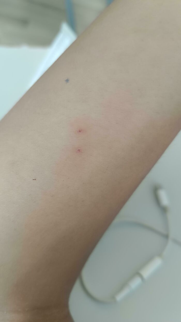 #24 I Keep Getting These Wounds Which Are Always 2 Spots In This Pattern When I Wake Up, Usually Get It Down My Legs But Today I Got It On My Arm Now