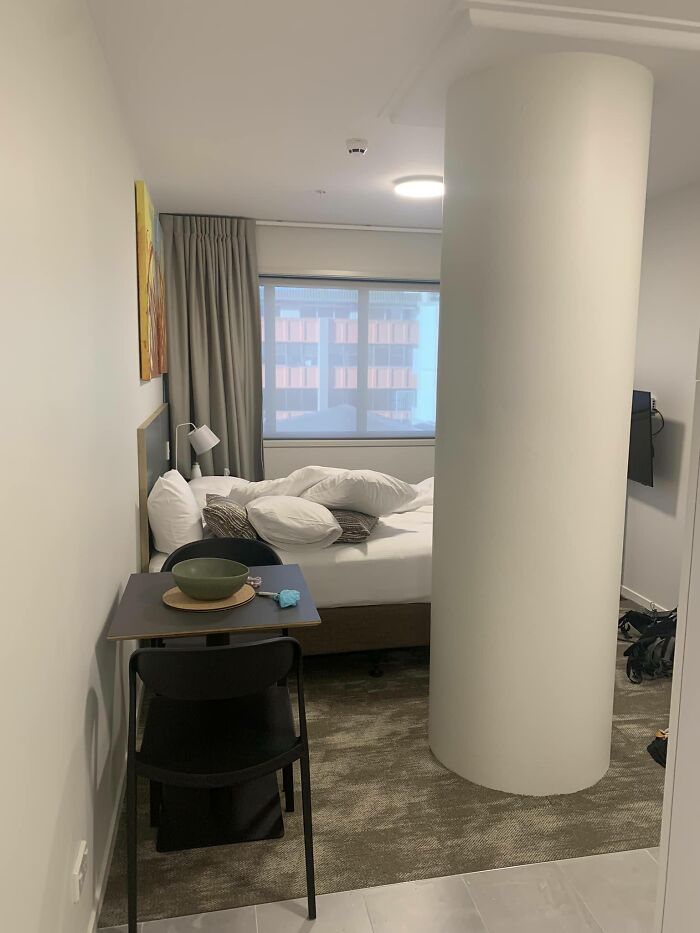 #33 My Hotel Room In Wellington Nz. Yes That Is A Giant Structural Pillar In The Middle Of The Room
