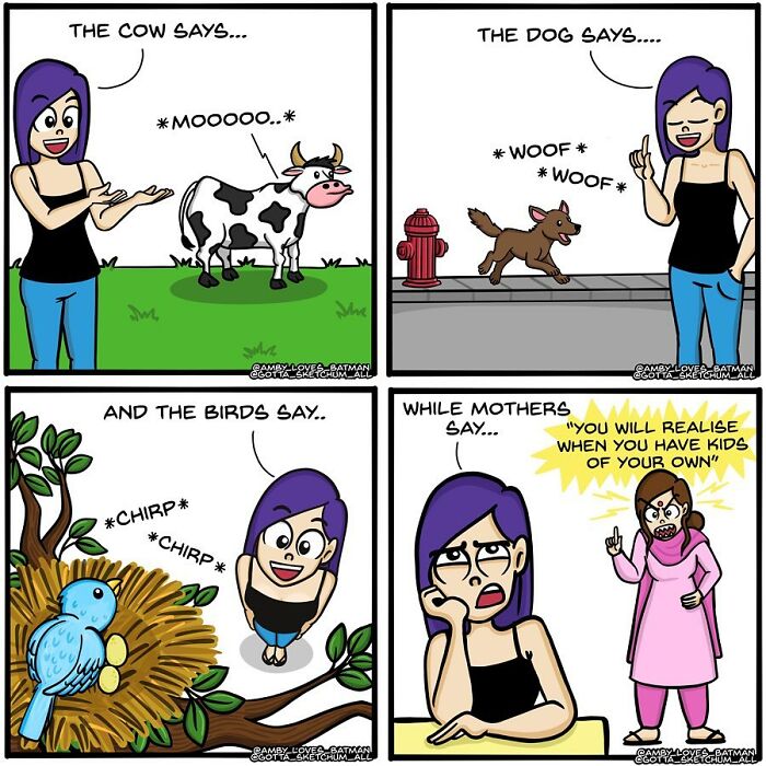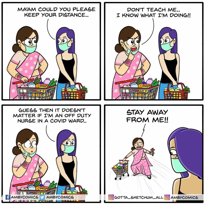 Amby makes funny yet relatable comics about her everyday life, experiences, her mom, and even her long-distance relationship with her boyfriend. Vaingankar has been making comics for over four years now and has accumulated over 129k Instagram followers.