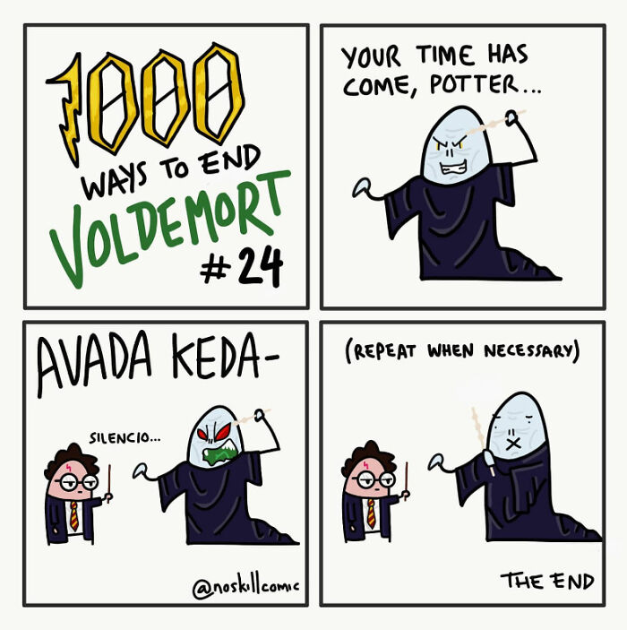 A couple of years ago, during quarantine, I decided to spend my time doing something creative. So, I grabbed an iPad and learned how to create webcomics. As a true Potterhead, I started the series “1000 Ways to End Voldemort,” where I imagine creative ways to end the Dark Lord. Apparently, I’m not that creative with names.