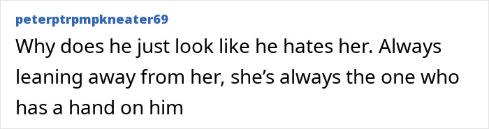 “Why does he just look like he hates her. Always leaning away from her, she’s always the one who has a hand on him,” one commented.