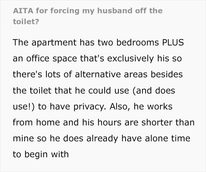 The post “He Spends Upwards Of 40 Minutes Going To The Bathroom”: Husband Refuses To Sacrifice His “Alone Time” For His Wife’s Comfort And Needs first appeared on Bored Panda.