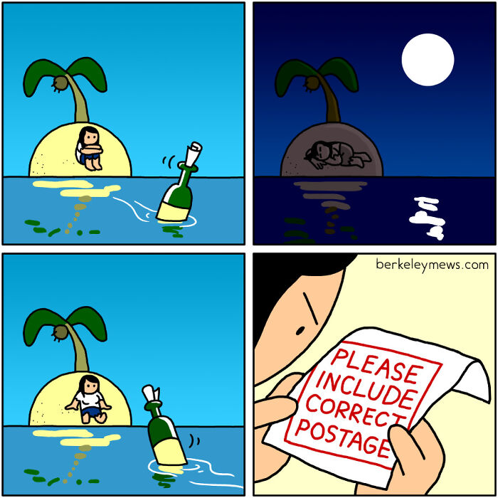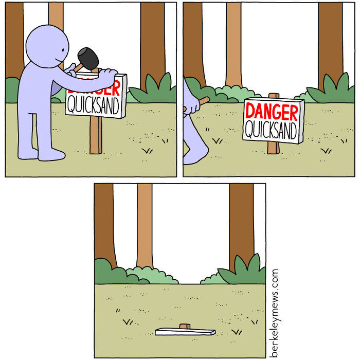 One of the main keys to comedy is the element of surprise. Even if a joke is pretty well done, you won’t laugh at it if you expect it. Ben Zaehringer’s Berkeley Mews comics exploit the element of surprise to perfection, and, naturally, this makes his works very funny. What he does is he takes seemingly simple, popular, and cliche topics and turns them on their head using dark comedy. It might be because of the naivete and innocence of the beginning of the comic, or maybe we’re just not used to these unorthodox plot twists, but the comedic effect of it always hits us right in the funny bone. It’s just something you don’t see coming. But let’s not get ahead of ourselves and spoil the fun! Check it out for yourselves.