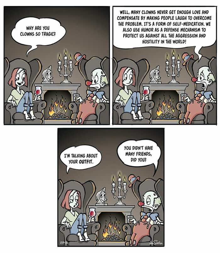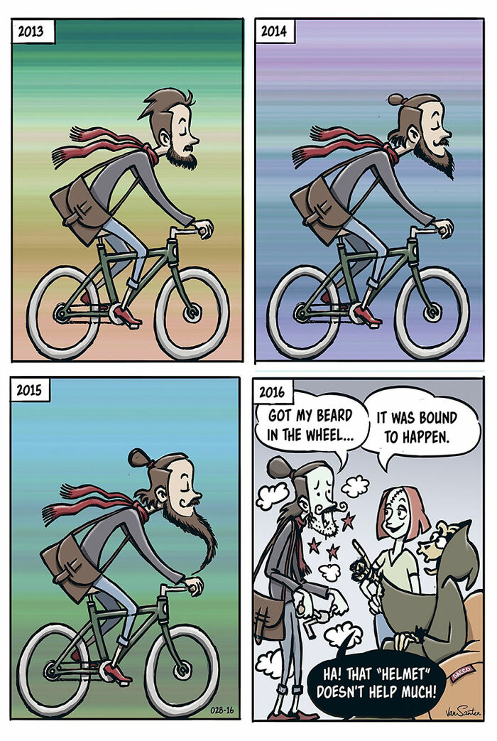 When asked about his creative process, Jorgen told us: “I would love to claim that great ideas just pop up in my head, but that’s not how it works for me. Being creative is hard work, and you have to exercise just like in sports if you want to be on top of your game. I have to be tuned in and focused to come up with stories—at least now that I have made over 200 comic strips. But once I have my antennas out, I can pick up interesting insights almost everywhere that might turn into a funny story. Other times, I just want to draw something specific and make up a story just to do that. Sometimes I even start drawing without knowing exactly what the punchline will be. That’s me living on the edge!”