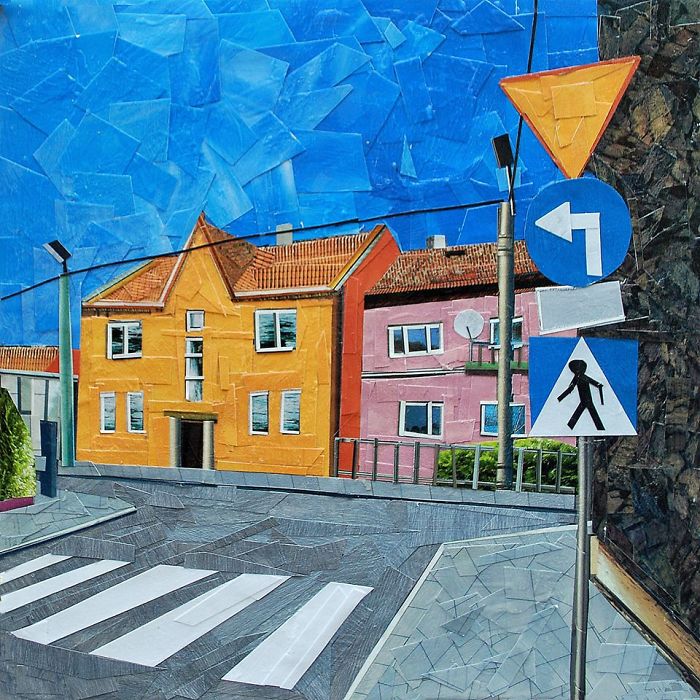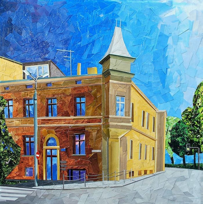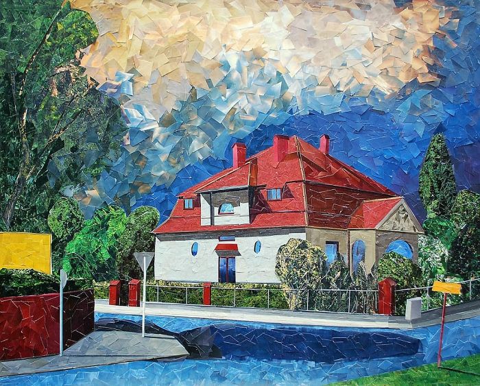 I’m trying to get the effect of oil painting with irregular brushstrokes. My works are made from thousands of pieces of paper. Completion of such an image takes me between one week and one month depending on the degree of complexity.
