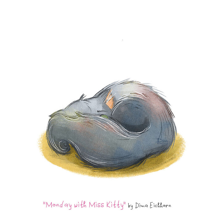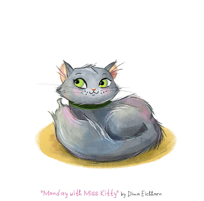 My name is Dima Eichhorn, and I am a children’s book author and illustrator. My most recent project is called “Monday with Miss Kitty”. The main idea while writing and illustrating “Monday with Miss Kitty” was to create a book that can exist as an ordinary bedtime story on its own and also be a useful tool/resource for explaining borderline personality disorder to younger readers.