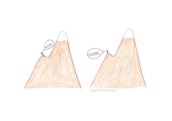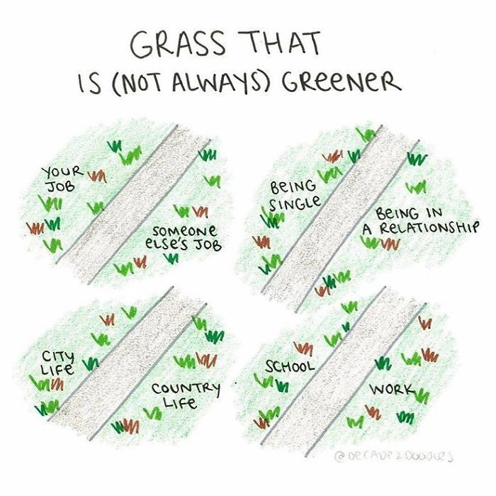 I feel incredibly lucky to be able to share my thoughts with so many people, and I smile looking back through my doodles as I remember the different life moments I’ve had over the past few years I’ve been drawing (one of them being getting engaged to my fiancé, who has affectionately been called “Doodle Boy” by my followers, and proposed to me by drawing a doodle! Check out my Instagram stories for that fun day). All of this is to say: for anyone looking to take a creative leap of faith – do it. It will always be worth it for the most important person out there: you. And maybe some others along the way, too!