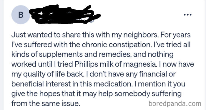 You can find neighbors asking about suspicious-looking ducks or someone offering at-home CPR services… there’s even a person who posted random advice about constipation for some reason.