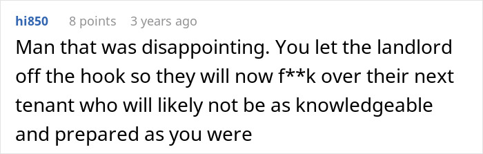 People in the comments were disappointed the OP didn’t take it a step further to teach the landlord a lesson
