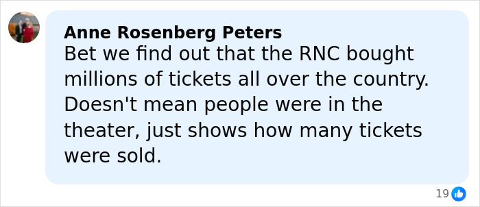 “Sources say that blocks of tickets to Melania were purchased and then distributed to Republican activists.”