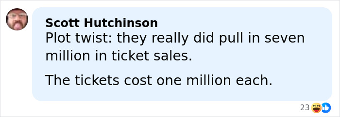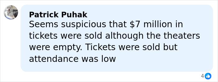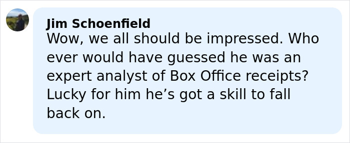 He claimed that the box office numbers were “rigged” and that the $7 million figure is “a fancy way of saying it only lost tens of millions of dollars.”
