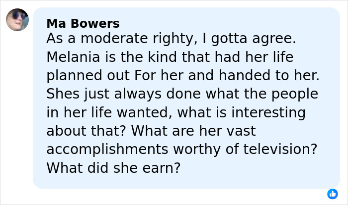 Meanwhile, the London Evening Standard gave it three stars, with critic Melanie McDonagh noting that “for those who accept what it’s about – Melania, curated by Melania (this may be mostly political nerds), it’s rather fascinating.”