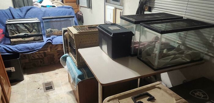 The heat had stopped working. We ended up having to move all the reptiles to my house. They would have died tonight.