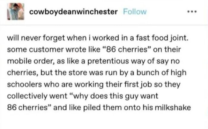 But working in restaurants comes with its own joys and challenges. There’s the high turnover rate, demanding customers, incompetent prep cooks, and accidental spills that make you want to crawl inside the Earth’s crust and never come back. The folks at “Kitchen Confidential” have seen it all, and if you’ve ever cried in a walk-in freezer, these posts might be relatable to you, too.