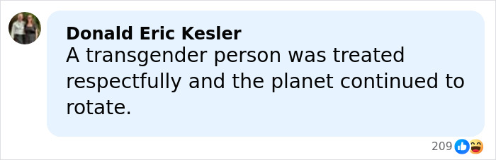 “A transgender person was treated respectfully and the planet continued to rotate,” a netizen expressed about the incident