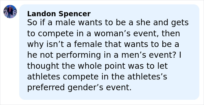 “It’s not hard to call someone what they prefer,” one person wrote, while another defended the commentators, saying, “But he was competing in a women’s sport. I’d get confused too.”