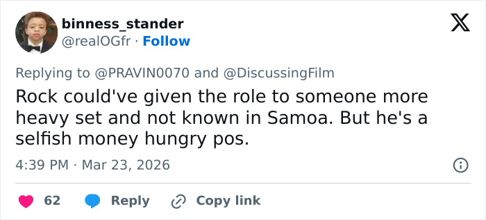 “A non-bald Dwayne Johnson feels so wrong,” one commented, while another added, “It’s not that he isn’t bald. It’s that they made no effort to make that wig look good.”
