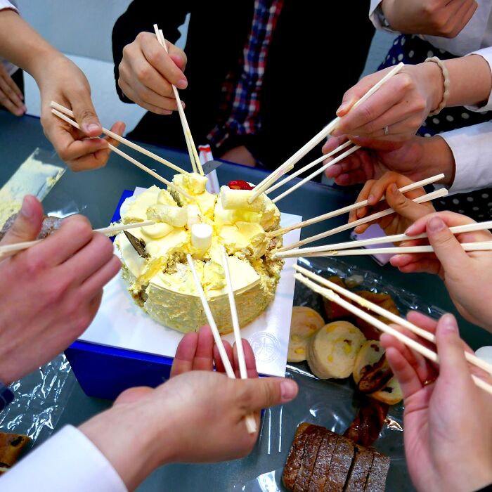My in-laws don’t own forks, so they eat whole cakes with chopsticks (everyone just digs in without slicing and serving it on separate plates)