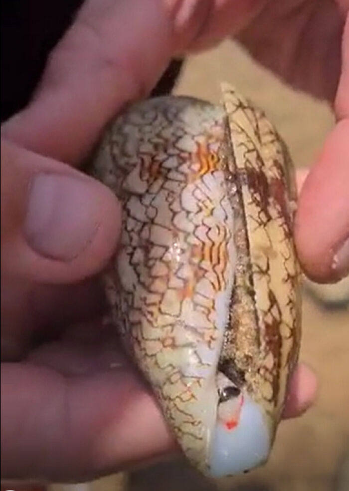 The snail in the video is a cone snail. It his highly venomous and has a stinger that carries it’s venom. With bigger ones having potent enough venom to k**l humans.