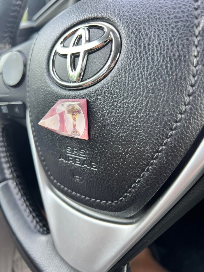 #5 This Person Glued Rocks And Crystals To Their Steering Wheel Airbag Effectively Making A Claymore That Points Directly At Their Face And Chest