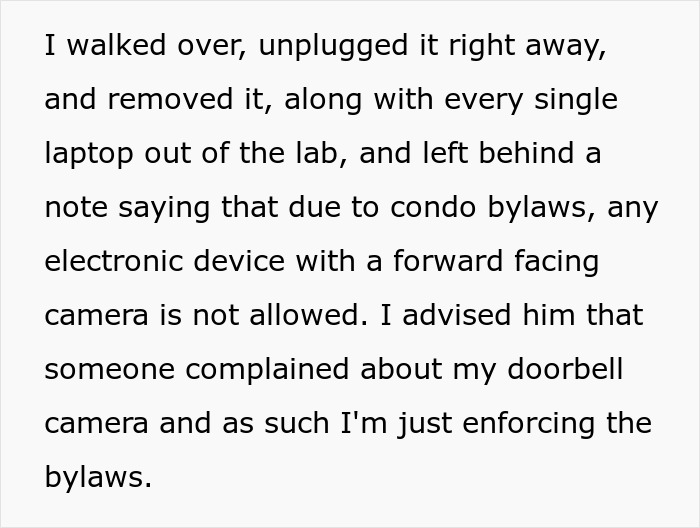 The post Person Gets Told They Can’t Install A Doorbell Camera At Their Co-Op, So They Remotely Lock All The Laptops That Also Have Cameras first appeared on Bored Panda.