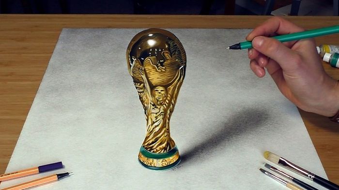 He does many types of drawings, one that stands out the most is the 3D illusion art he makes. They are the most popular among his work and look absolutely incredible and realistic.