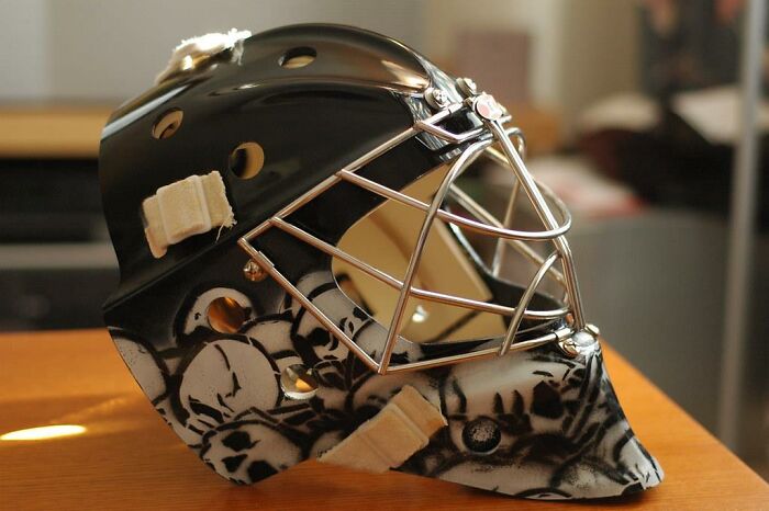 I was driving behind a pale blue, windowless van on a spring afternoon. A light turned red, and as I pulled up behind the van, the driver turned to look in his side mirror and I saw he was wearing a hockey goalie mask. Scared the bejeezus out of me