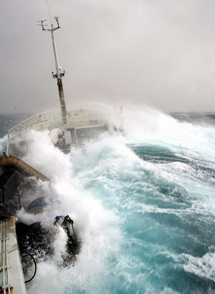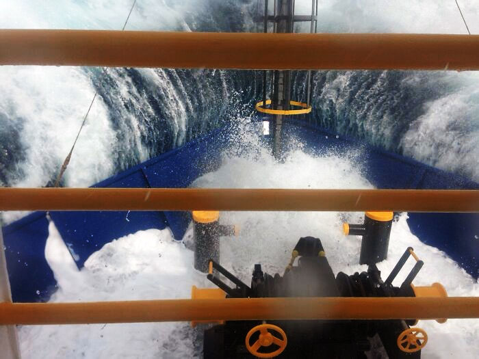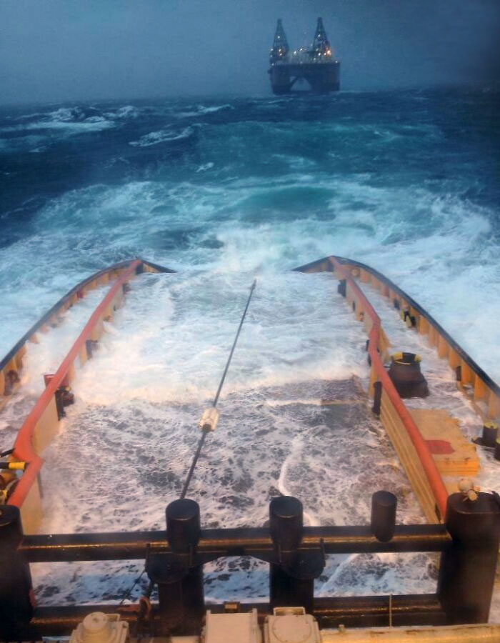 #27 My Cousin’s Sister-In-Law Works On A Tugboat That Tows Oil Platforms Across The Ocean. In All Weather Conditions