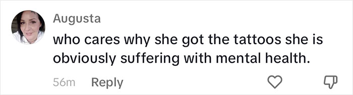 But Treacle Tatts also pointed at Taylor’s visible mental illness, a condition she says she “truly believes”, and that undoubtedly affected her choices of getting the gigantic facial tattoo in later years.
