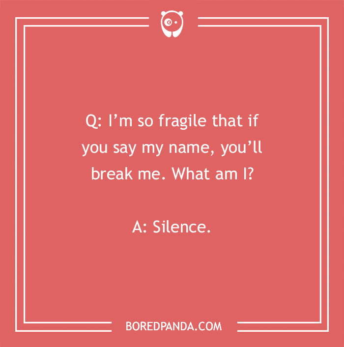 I’m so fragile that if you say my name, you’ll break me. What am I? Silence.