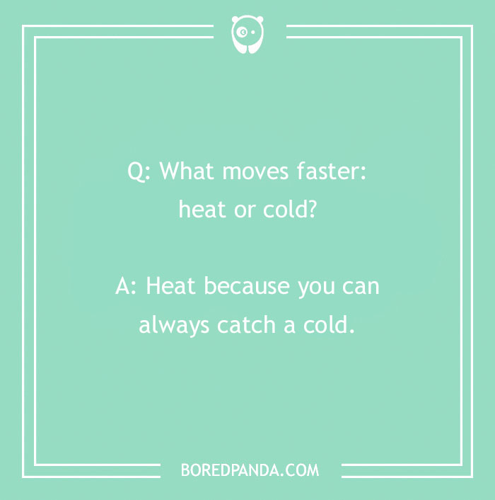 What moves faster: heat or cold? Heat because you can always catch a cold.