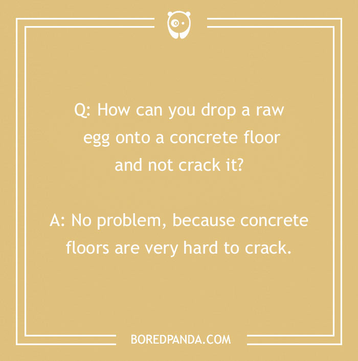 How can you drop a raw egg onto a concrete floor and not crack it? No problem, because concrete floors are very hard to crack.