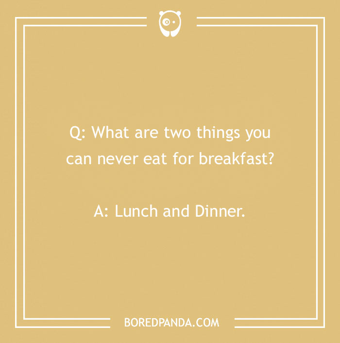 What are two things you can never eat for breakfast? Lunch and Dinner.