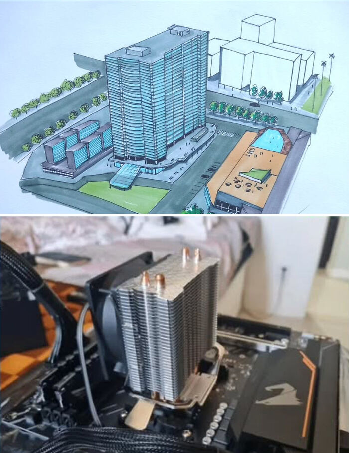 We wondered how the artist ensured that his creative designs would also work as real buildings. Felipe responded: “This is an art to exercise creativity. It helps me look at the “problem” from another perspective and find more practical solutions. I try my best to create a volume by imagining the structure and thinking about where the beams and structural pillars would be.