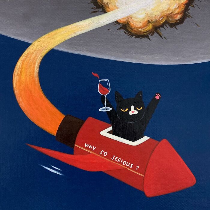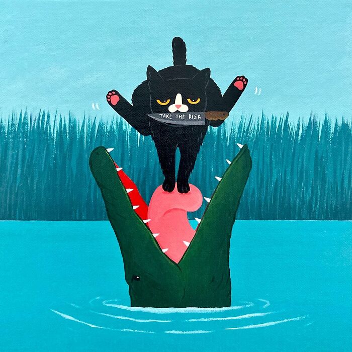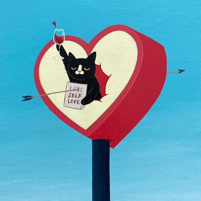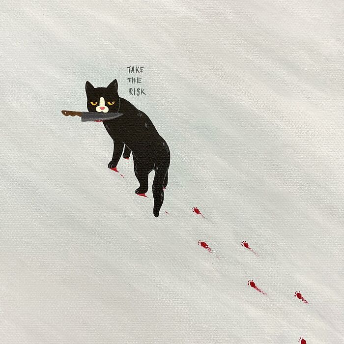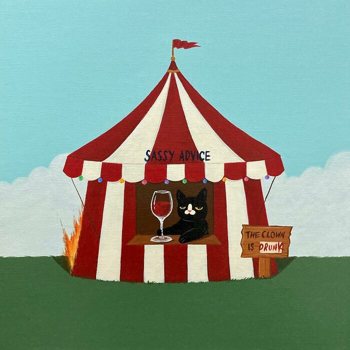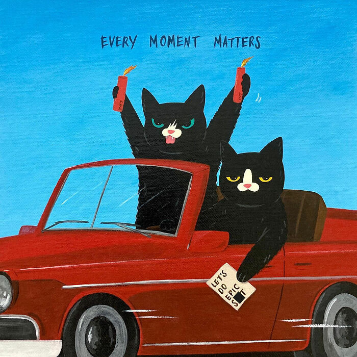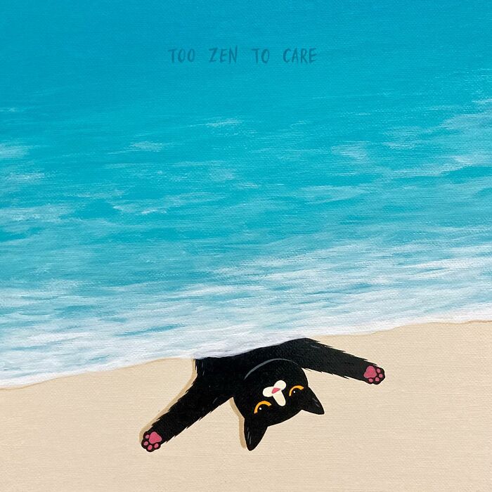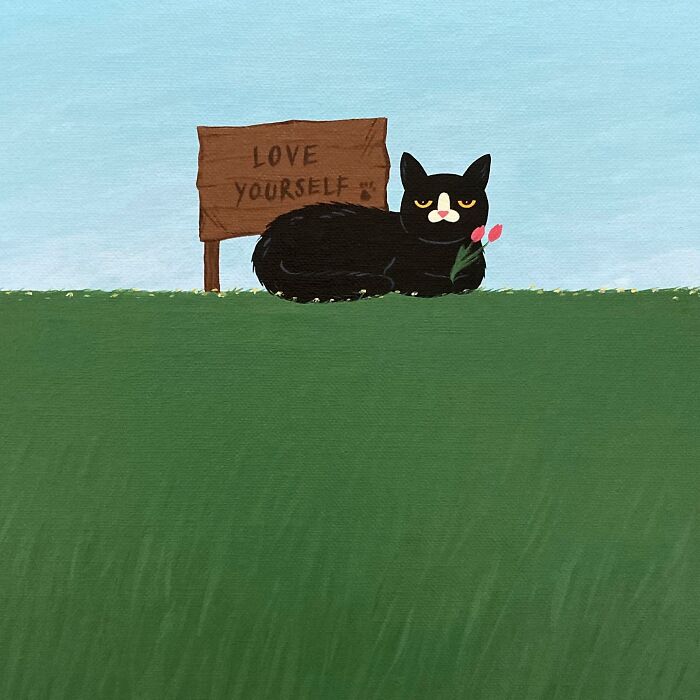 We’re delighted to present the most recent work by the Malaysian creator of a hilarious series of illustrations called Studio After Cigs. If you haven’t seen any paintings by this artist, you’re really missing out, so make sure to check out our previous post where we featured earlier images depicting PowPow the cat and her unique thoughts about life, problems, and self-love.