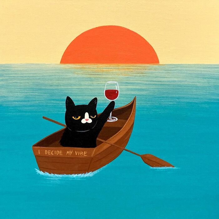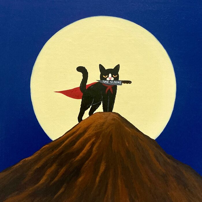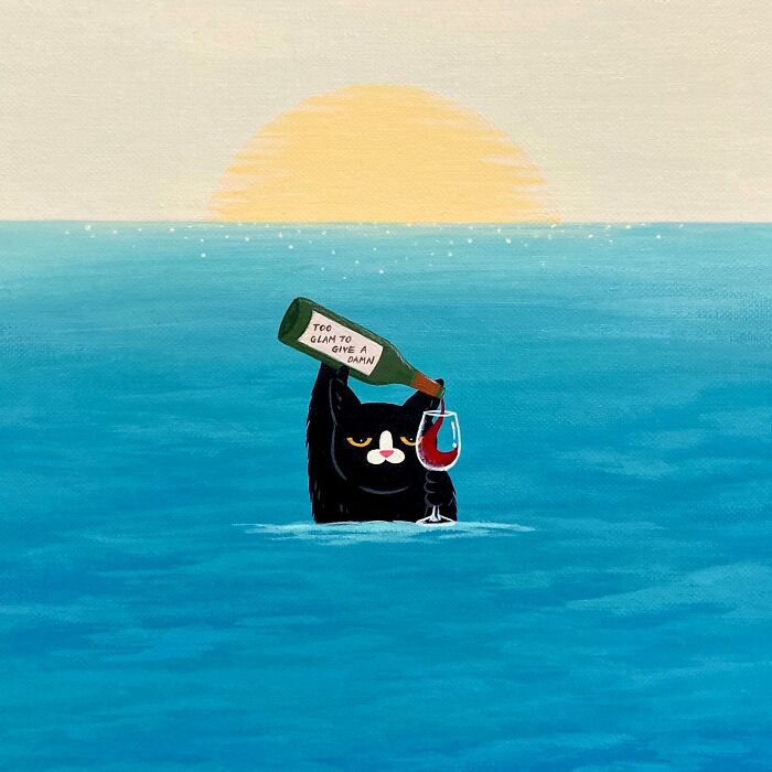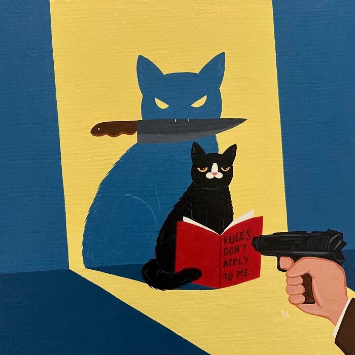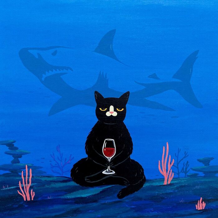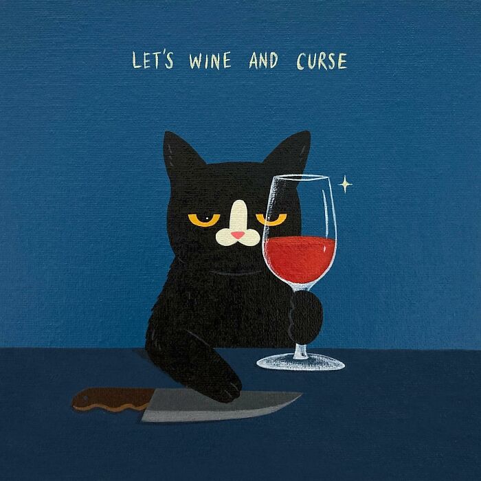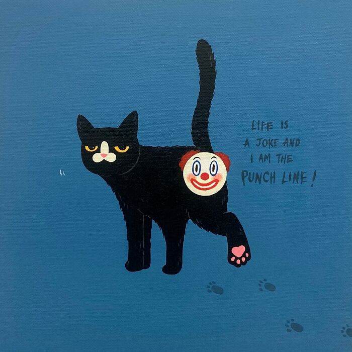 For those who are not familiar with Studio After Cigs, here’s what the author shared with us while talking about these funny cat illustrations: ‘Through PowPow, I hope to convey the sassiness and complexity of these beloved creatures. Each piece is a tribute to their ‘Multitudes’ or the so-called Catitude.’