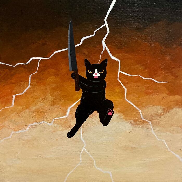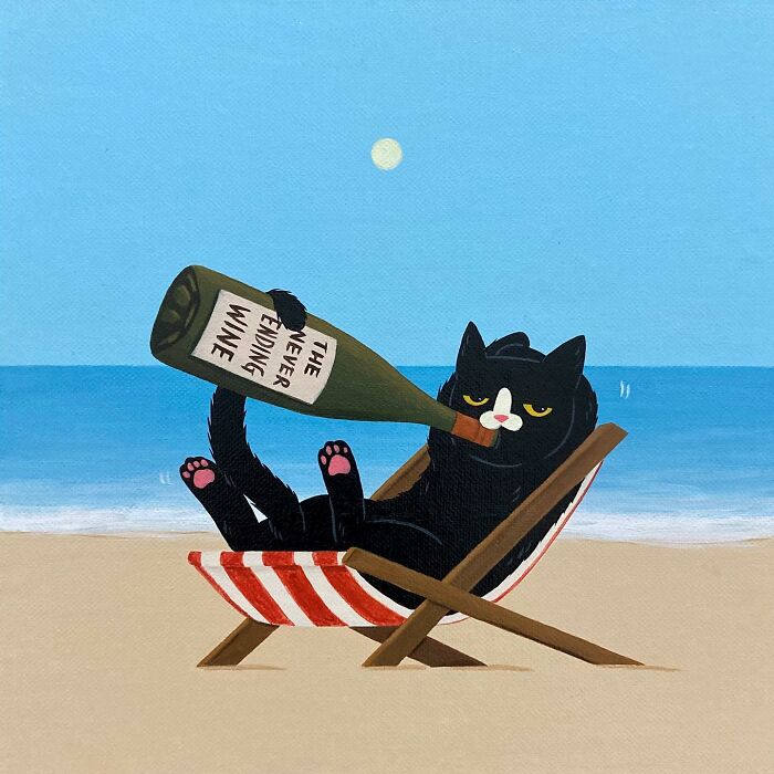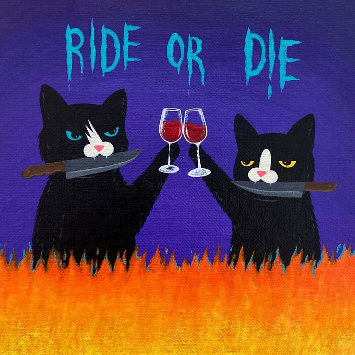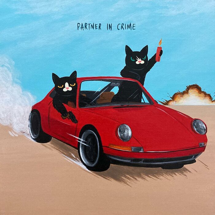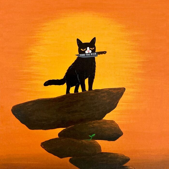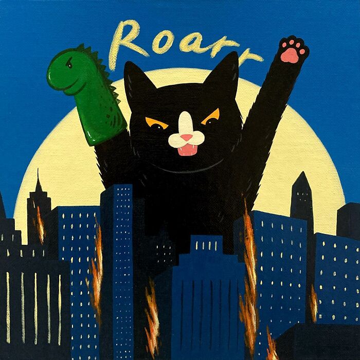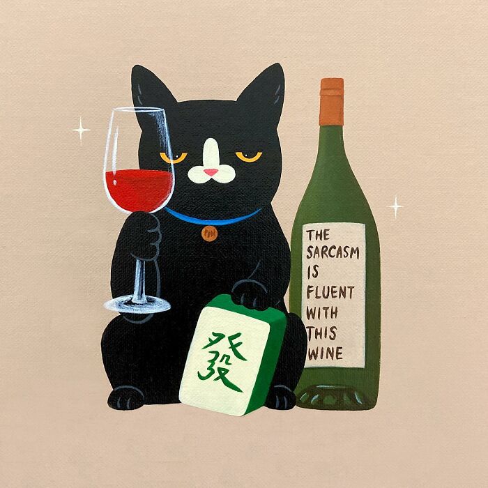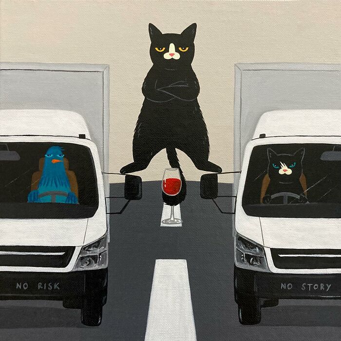 For those who are not familiar with Studio After Cigs, here’s what the author shared with us while talking about these funny cat illustrations: ‘Through PowPow, I hope to convey the sassiness and complexity of these beloved creatures. Each piece is a tribute to their ‘Multitudes’ or the so-called Catitude.’