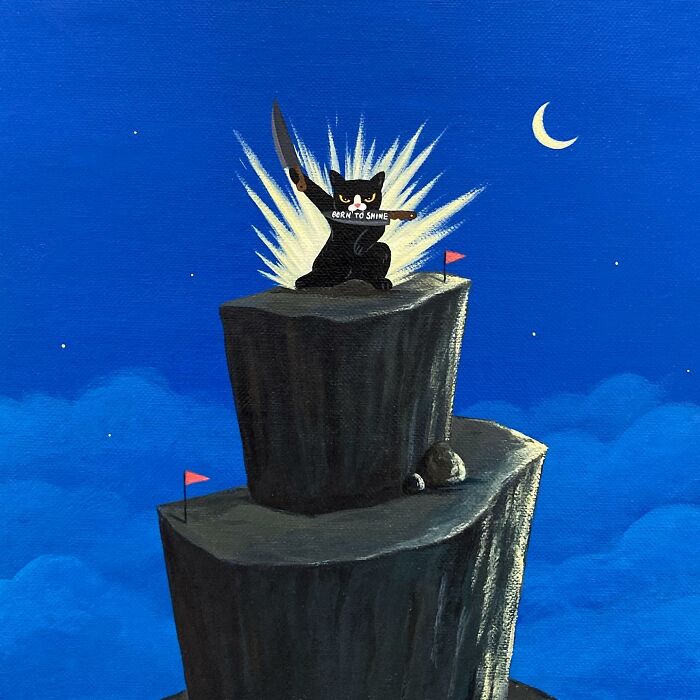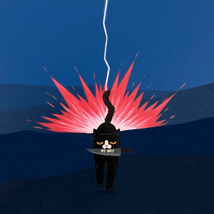The story behind Studio After Cigs is fascinating, and it starts with the adopted cat who’s the inspiration for creating the character of a grumpy feline with a sassy cattitude, PowPow. Bored Panda reached out to the artist behind the series of illustrations to ask more questions about their work. We wanted to know how this unique source of inspiration led the author of the series into the world of art. We found out: “The grumpy and sassy cattitude of my adopted cat sparked everything.”