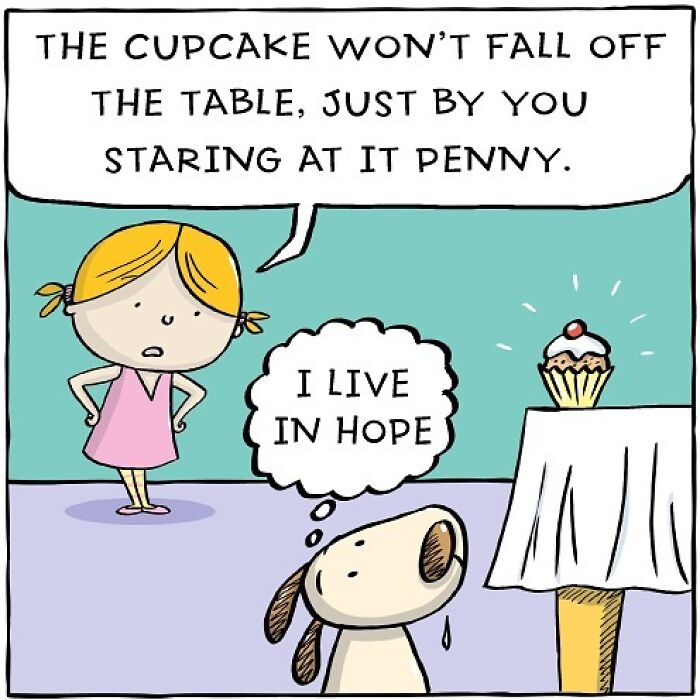 Ever wondered what goes on in a dog’s mind? Penny, the lovable star of ‘Penny’s Thoughts’ cartoons, gives us a glimpse into that mystery! Created by Peter Allwright, this wholesome comic series follows a cute dog’s daily routine, turning ordinary moments into hilarious situations.