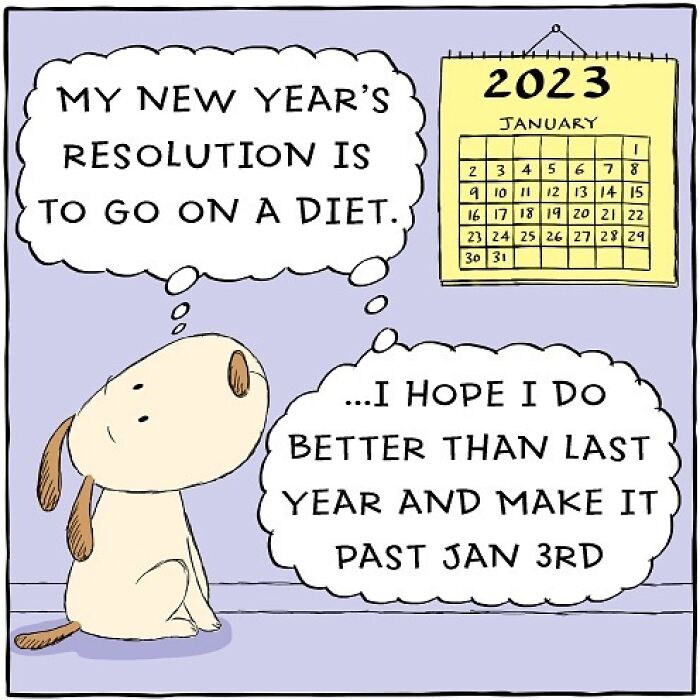 When asked about the recurring themes in his cartoon, the creator of ‘Penny’s Thoughts‘ responded that they revolve mainly arounds food and diets. Allwright elaborated: “A lot of us (me) tend to spend as much time worrying about weight gain as we (me again) do about where our next sugar fix will come from. This paradox makes for a lot of humour ideas!”