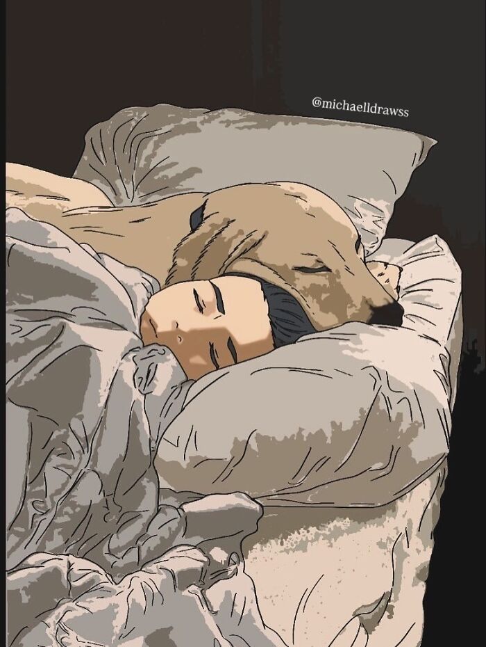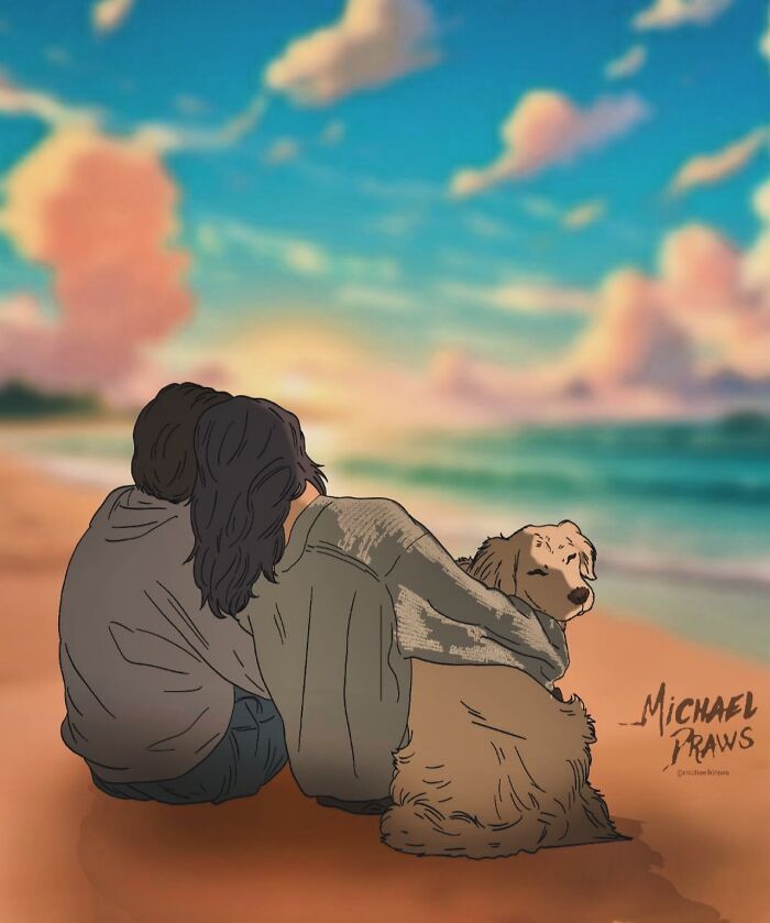 A big turning point came in 2017, when he moved into digital art and realized how much freedom the medium gave him. With digital tools, he could experiment endlessly with textures, lighting, and color. This is where the emotional realism that defines his work today really began to click. What stands out about Michael’s portraits isn’t just how lifelike they look, but how personal they feel. Many of his commissions revolve around the bond between people and their pets: the way someone holds their dog close, the visible trust in an animal’s expression, the small gestures that say everything without words. His portraits often truly feel like a moment being preserved.