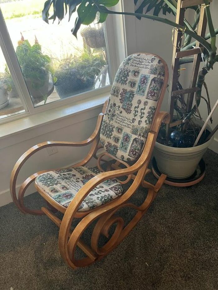 My $10 Facebook Marketplace find. So happy to have this unique piece. I’m probably gonna reupholster it and maybe stain it darker. It’s definitely hand made too.