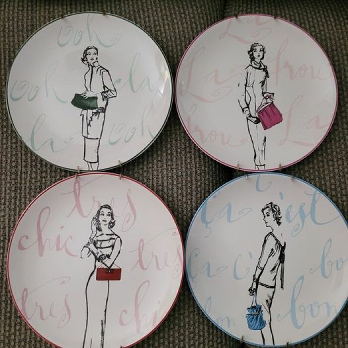 These are so adorable, I was delighted to find them and in perfect condition. Rosanna set of four ‘Tres Chic’ fashion dress plates. $8 at Goodwill.